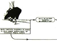 Bags, checked examined and loaded into the hold under the supervision of the Canadian Postal Corps |