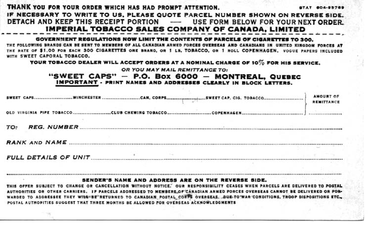 Canada - World War II - Overseas Tobacco Distribution - Imperial Tobacco
